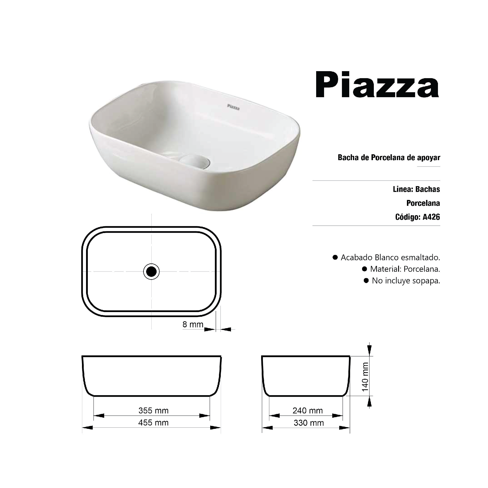 Bacha De Apoyo Piazza A426 B cantidad